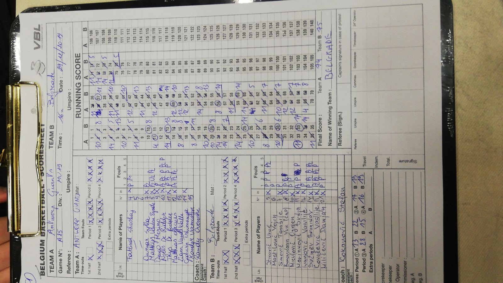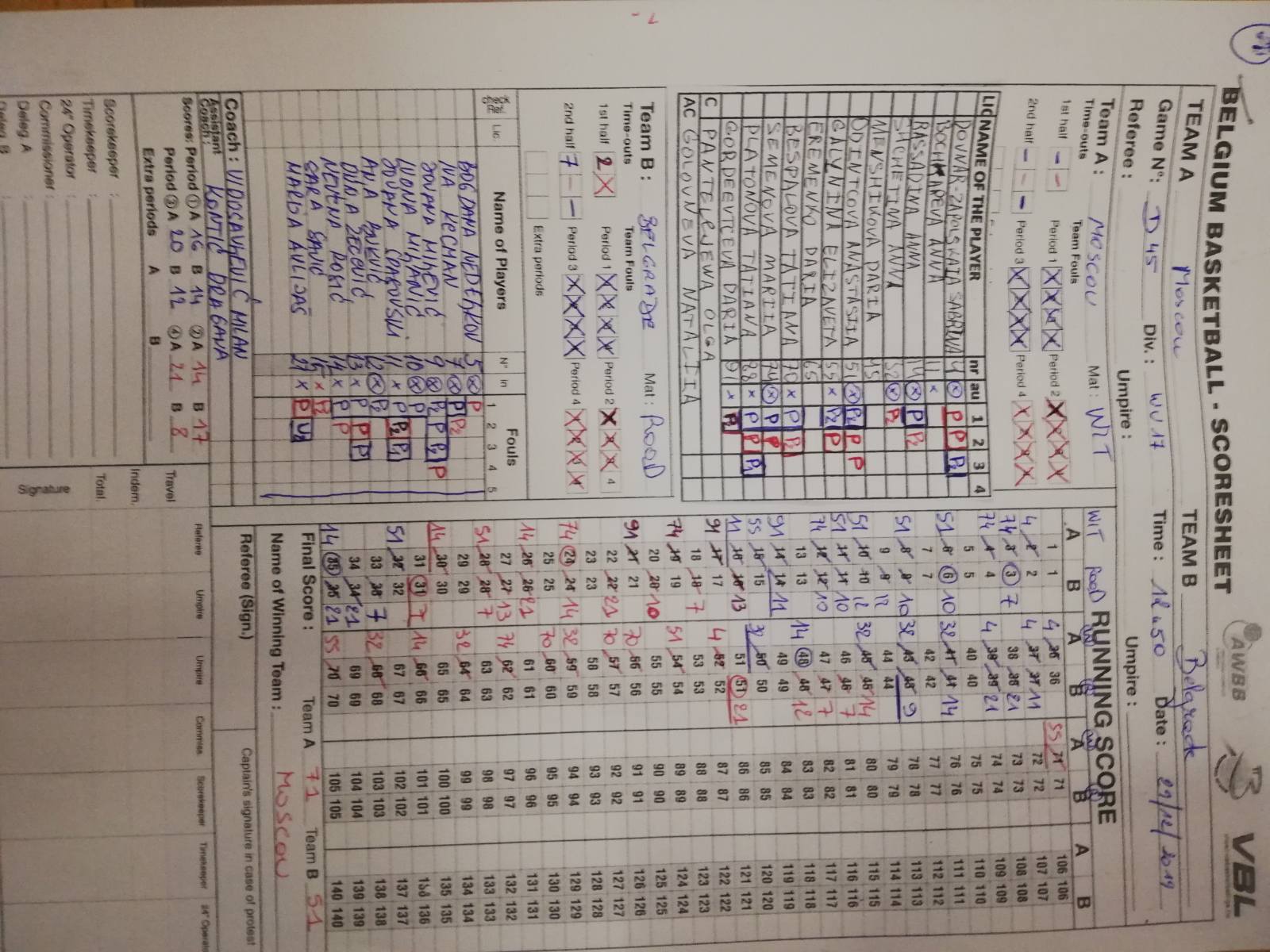 БЕЛГРАДЕ БАСКЕТБАЛЛ - АССОИОН WАРЕГЕМ 87:34